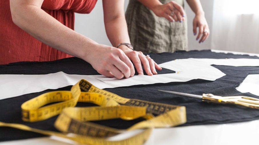 - Закрепите ткань булавками, чтобы она не смещалась во время работы.